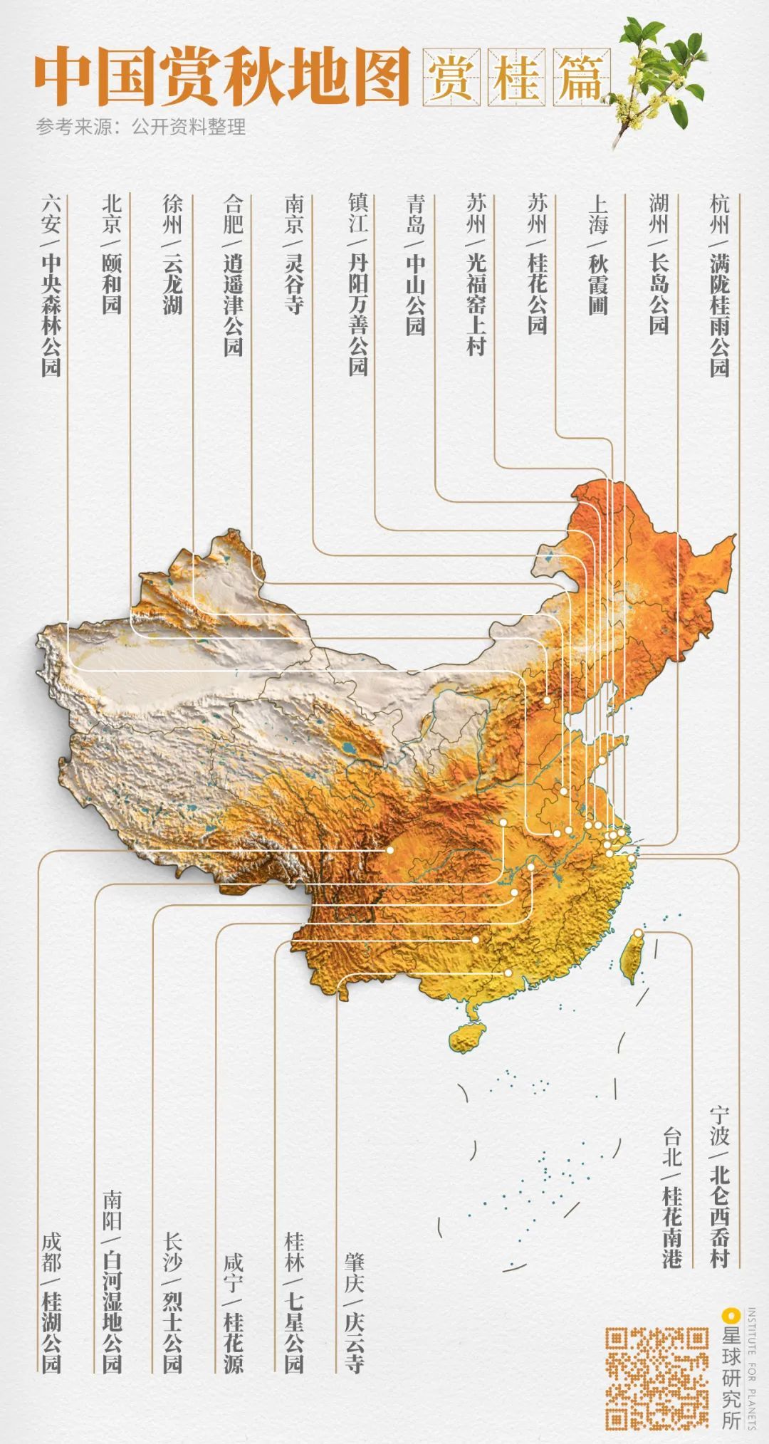 (中国赏秋地图⎜赏桂篇,制图@郑艺&郑伯容/星球研究所)