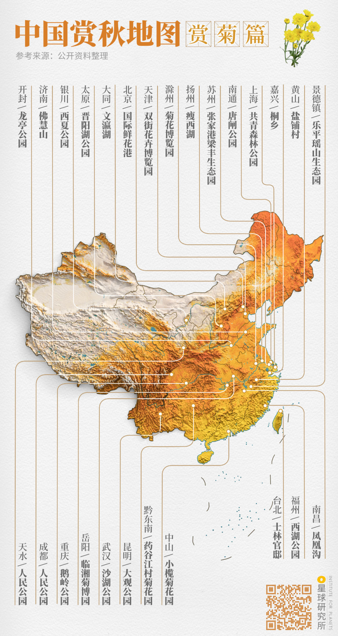 (中国赏秋地图⎜赏菊篇,制图@郑艺&郑伯容/星球研究所)