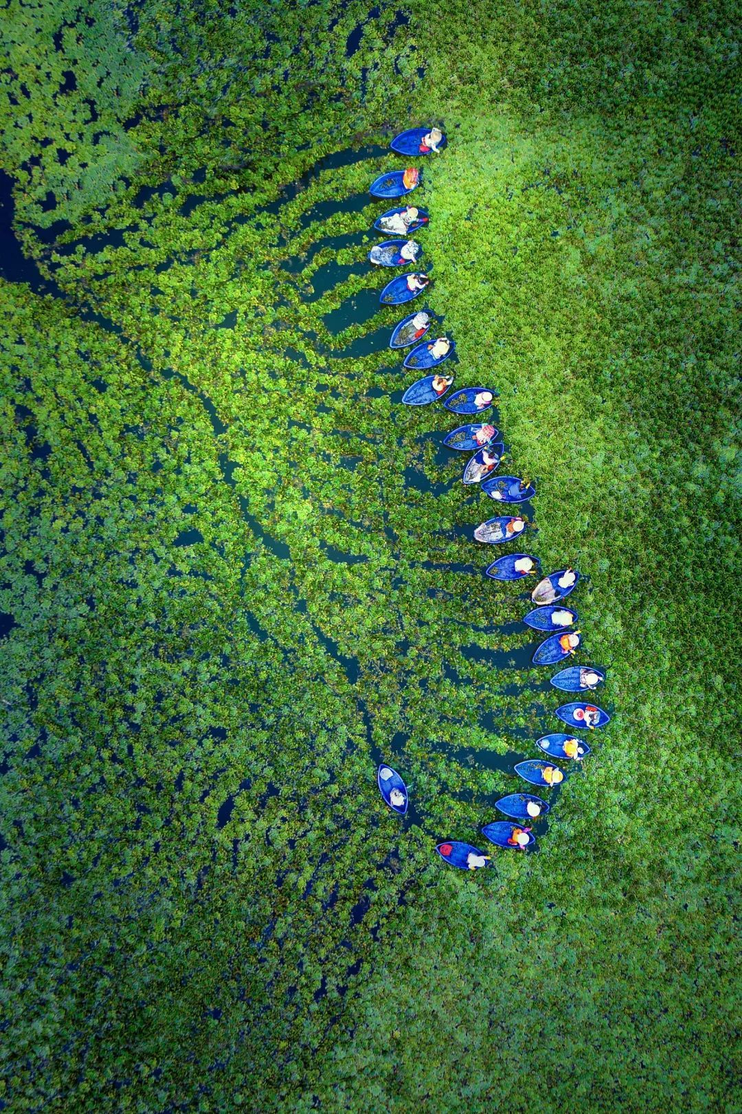 (出自唐朝白居易《看采菱》;下图请滑动查看,菱的果实菱角皮脆肉美,蒸煮剥壳后可食用,图片来源@视觉中国)