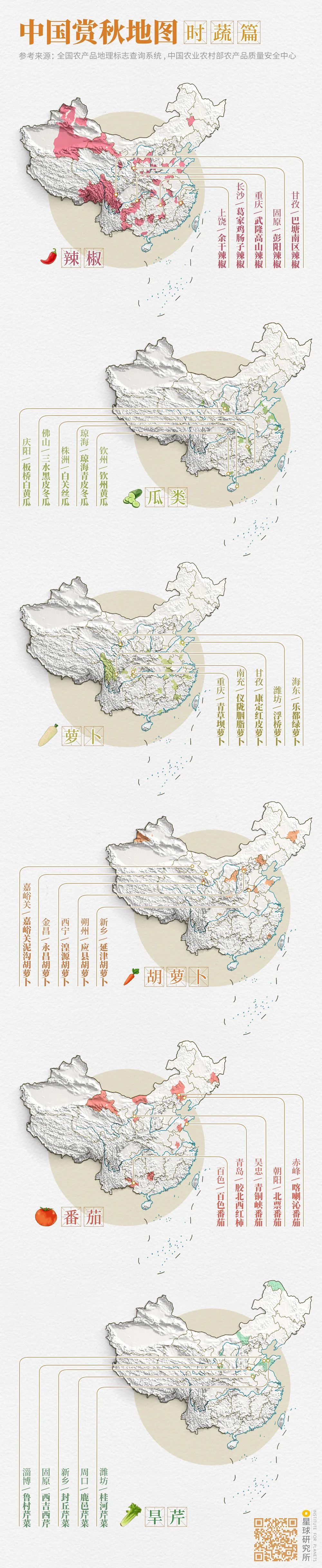 (中国赏秋地图⎜时蔬篇,制图@郑艺&郑伯容/星球研究所)