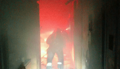情况紧急,消防员破门而入