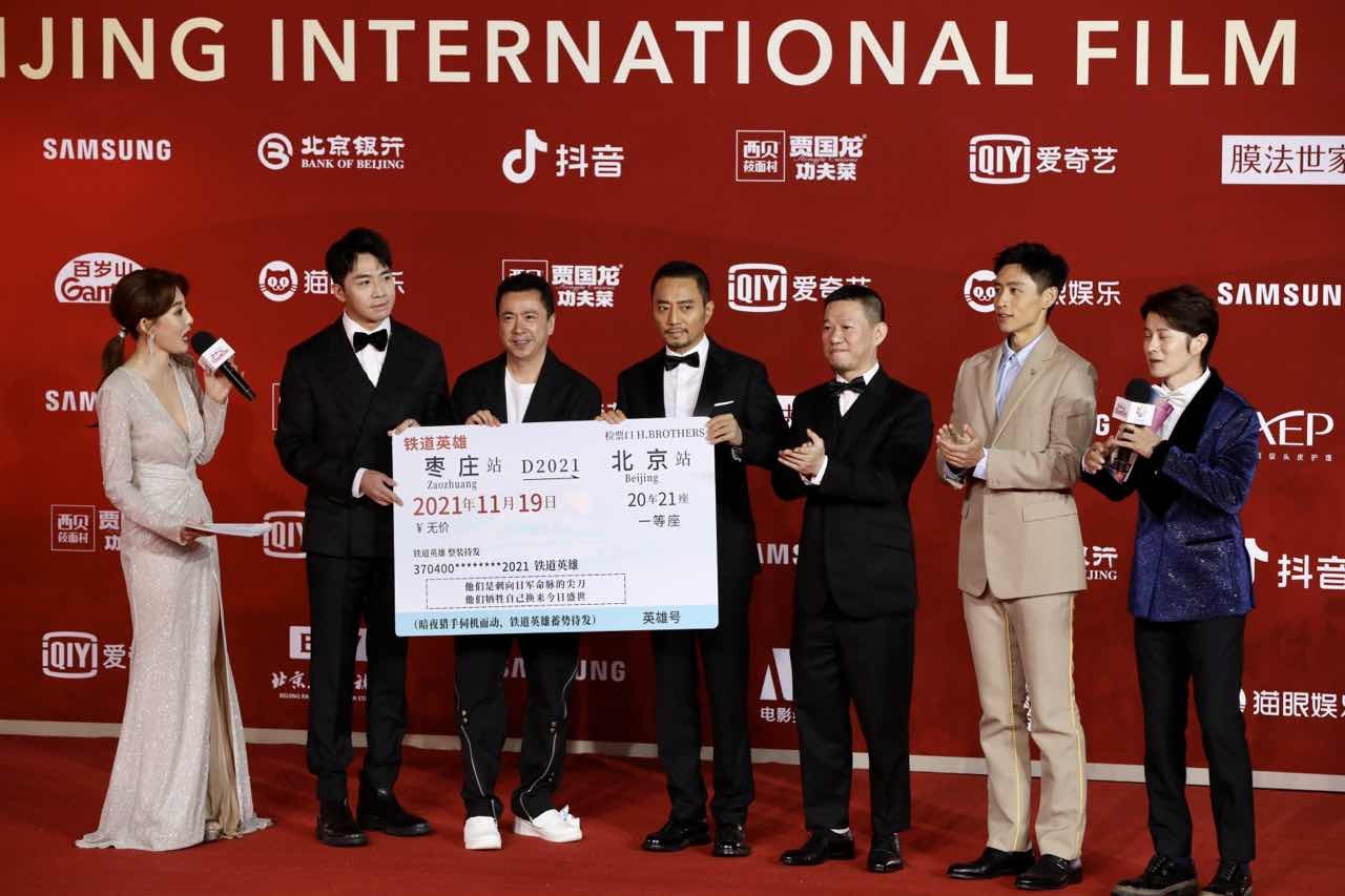 9月20日,电影《铁道英雄》剧组成员亮相北京国际电影节红毯仪式。 中国日报记者 朱兴鑫 摄