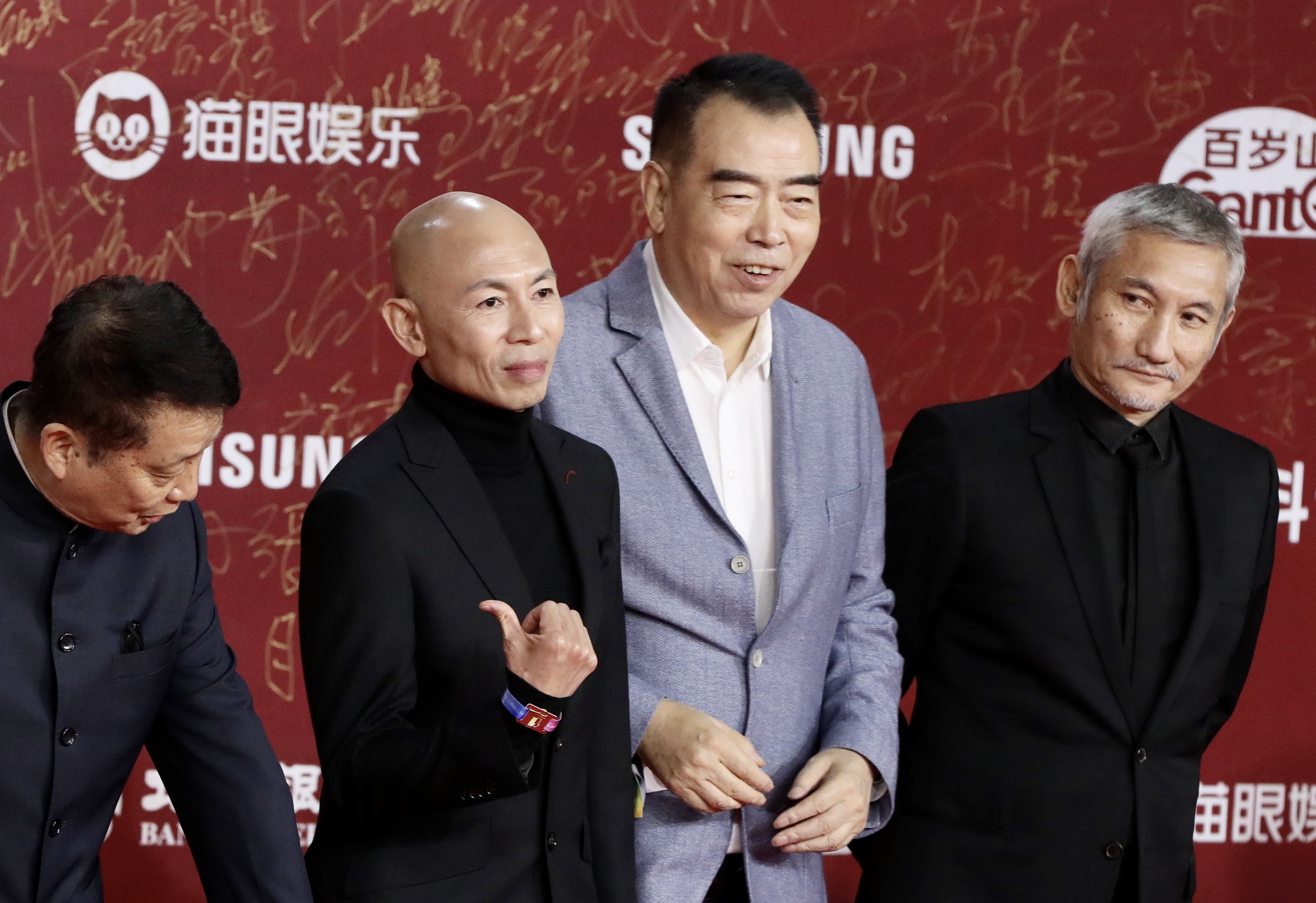 9月20日,导演陈凯歌(中)、徐克(右一)、林超贤(左二)共同亮相北京国际电影节红毯仪式。 中国日报记者 朱兴鑫 摄
