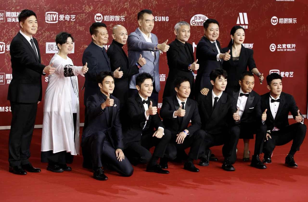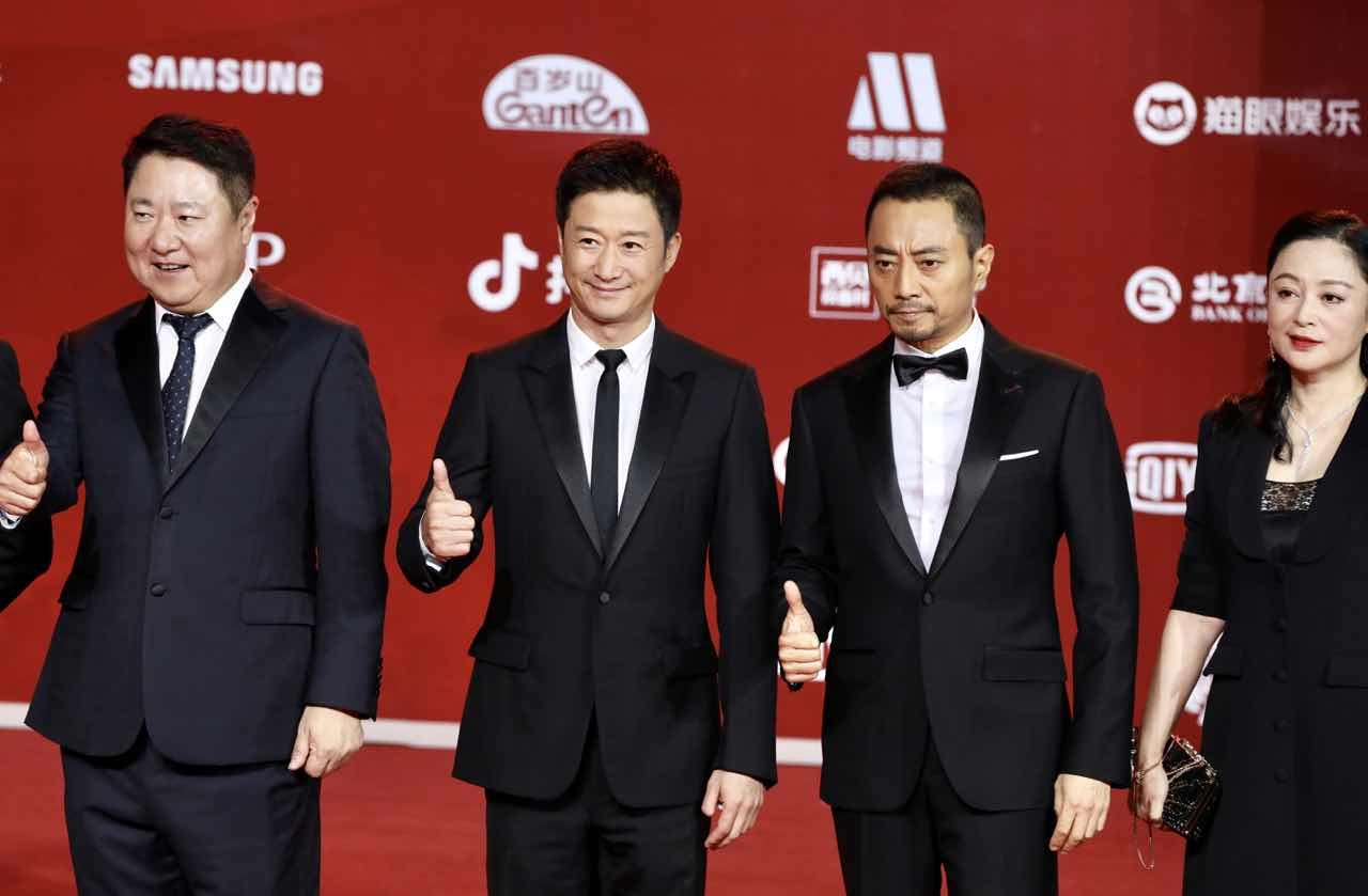 9月20日,演员吴京(左二)、张涵予(左三)亮相北京国际电影节红毯仪式。 中国日报记者 朱兴鑫 摄