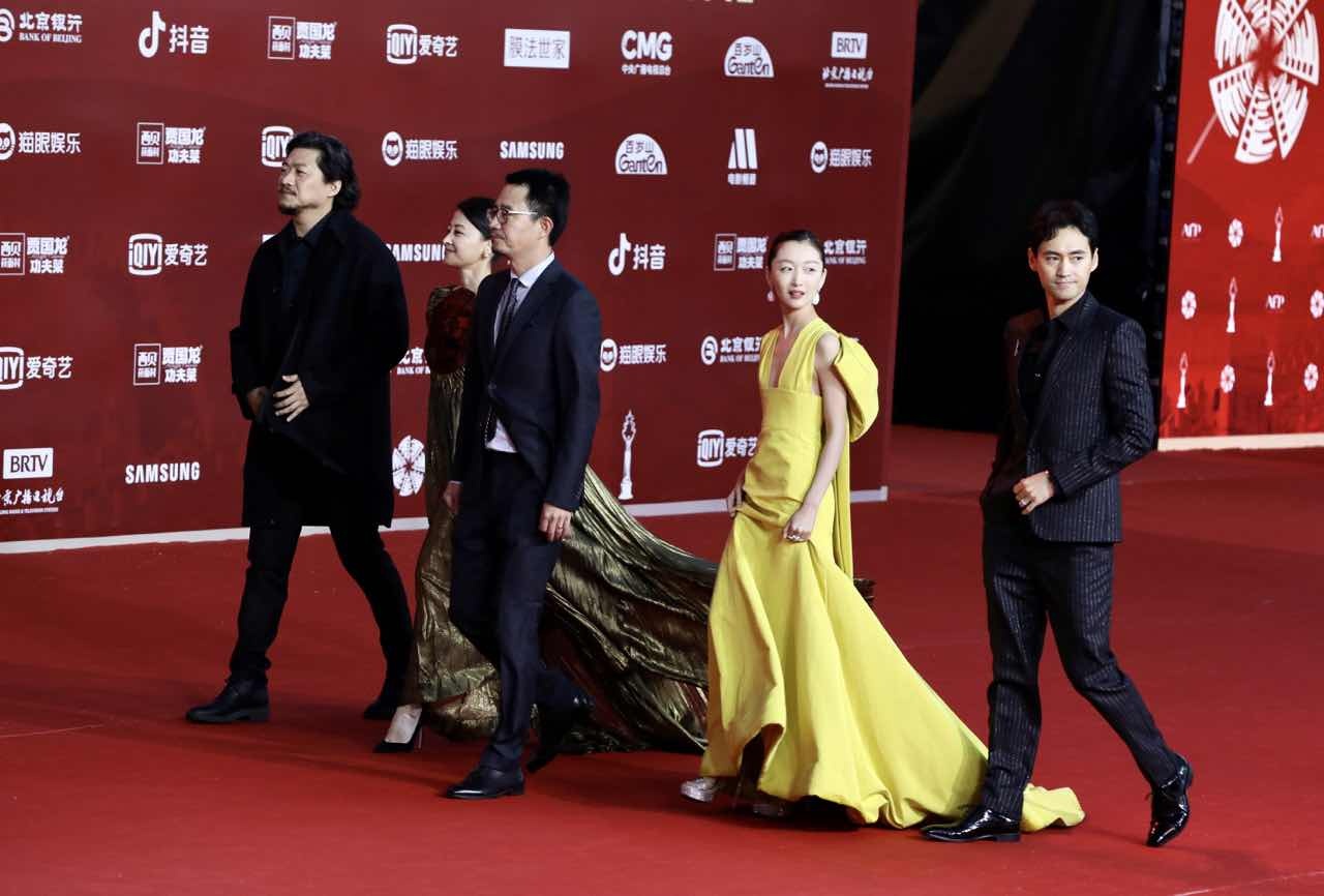 9月20日,北京国际电影节天坛奖评委会成员巩俐、陈坤、陈正道、乌尔善和张颂文亮相红毯仪式。 中国日报记者 朱兴鑫 摄