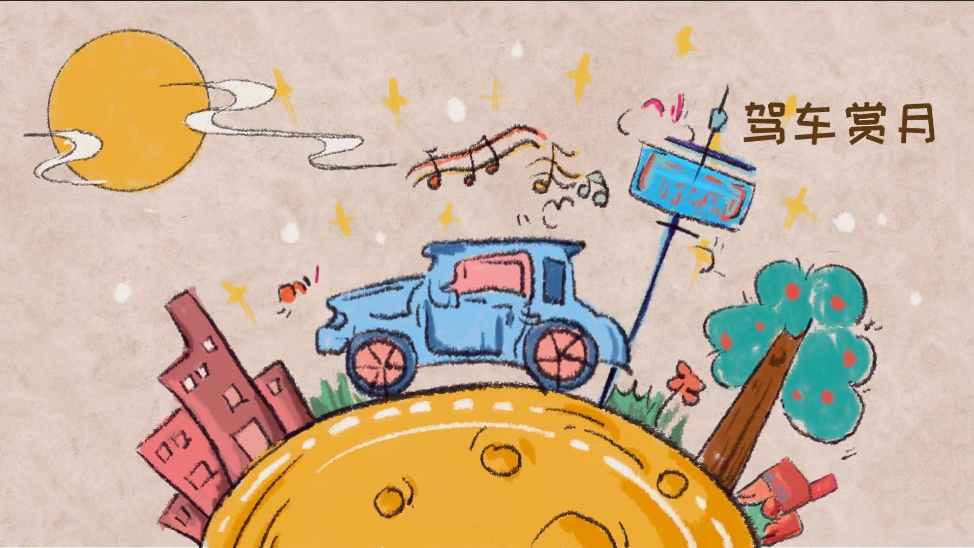 驾车去兜风,打开全景天窗,听着音乐感受中秋夜挂在天上的那一轮明月。