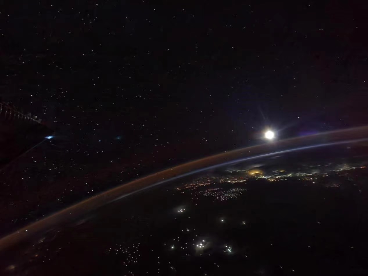 航天员汤洪波在空间站也亲手拍摄到了月亮图片。超亮眼!