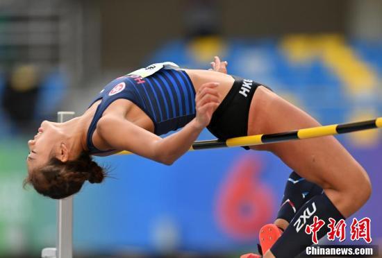 9月21日上午,第十四届全运会田径女子跳高决赛在西安举行,香港特别行政区选手张静岚出赛,以1.70米的成绩位列第18名。图为张静岚在比赛中。 中新社记者 侯宇 摄