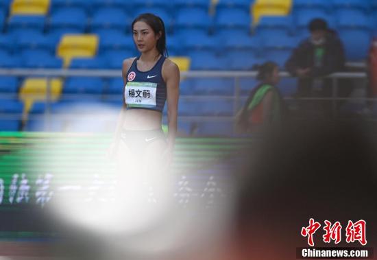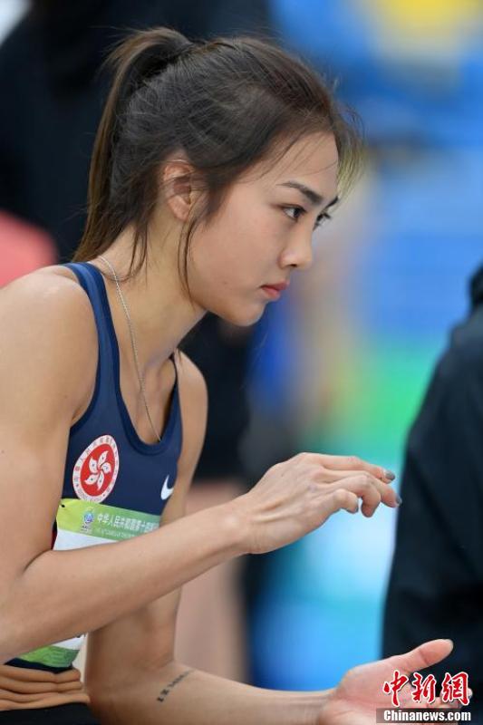 9月21日上午,第十四届全运会田径女子跳高决赛在西安举行,香港特别行政区选手杨文蔚出赛,以1.75米的成绩位列第15名。图为杨文蔚准备试跳。 中新社记者 侯宇 摄