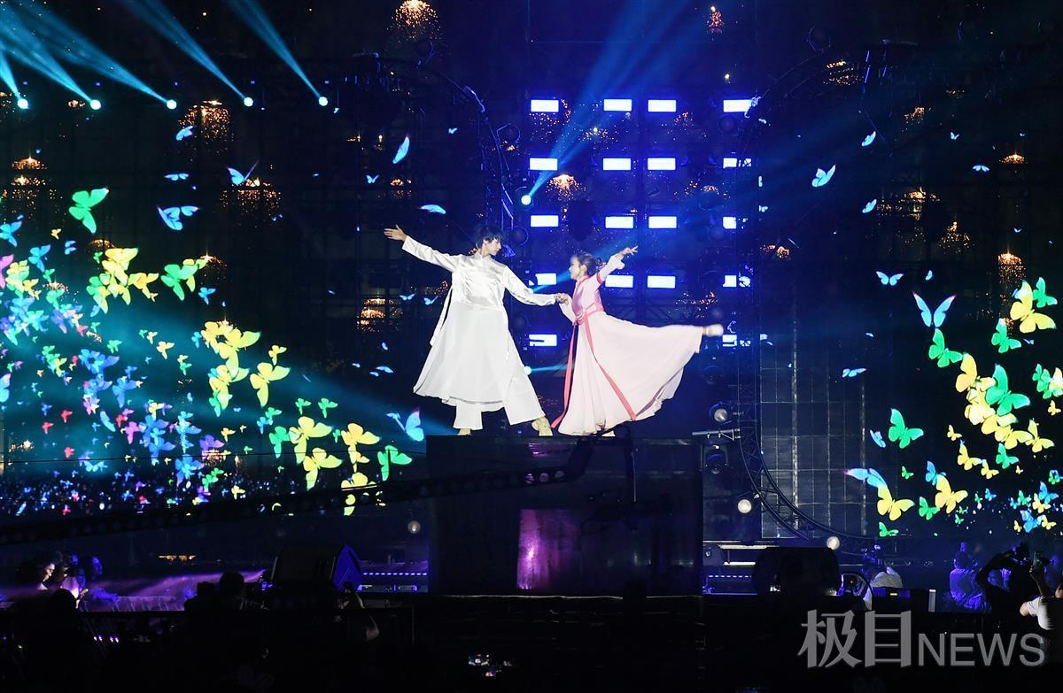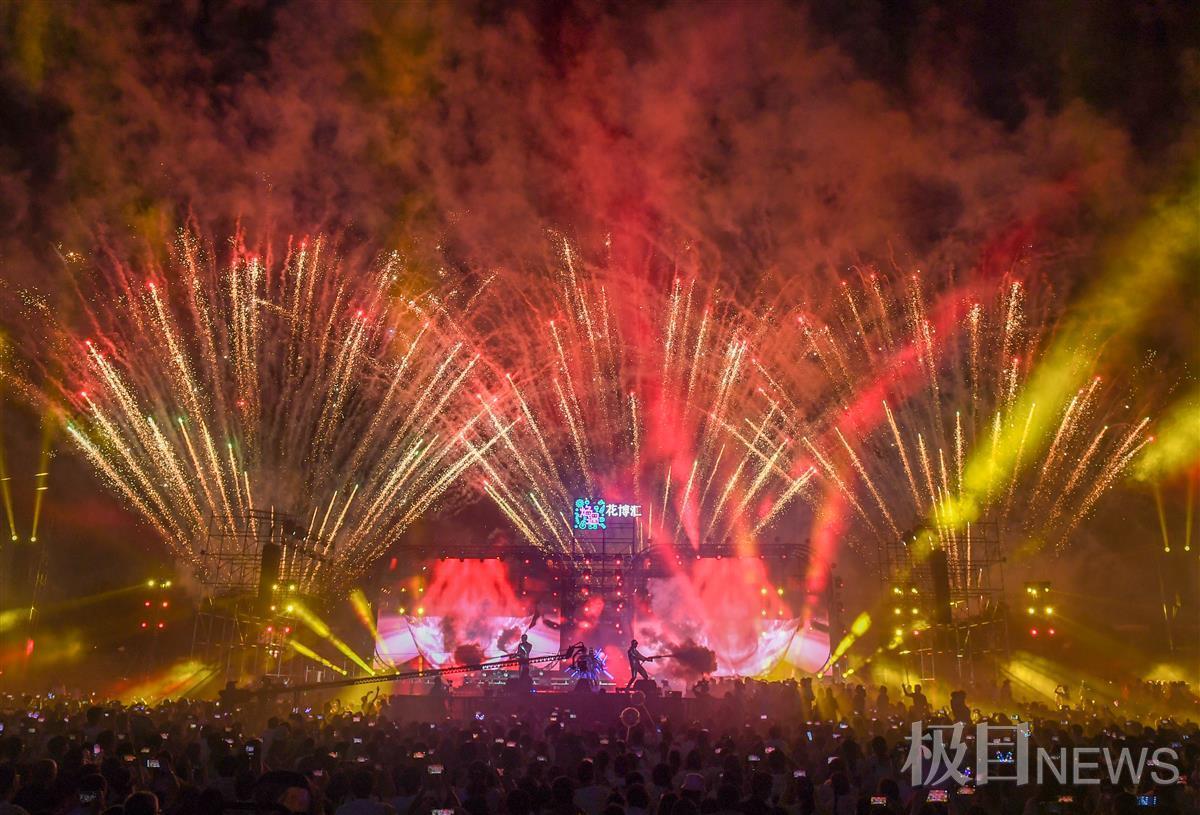极目新闻记者在现场看到,与传统的“一放到底”烟花秀不同,主题为“焰遇花博汇之金秋花月夜”的焰火晚会,将焰火燃放融合于舞台表演,让国风雅韵与科幻世界通过焰火剧场完美融合,呈现焰火、圆月同框的美景,给现场观众带来别有风味的体验。
