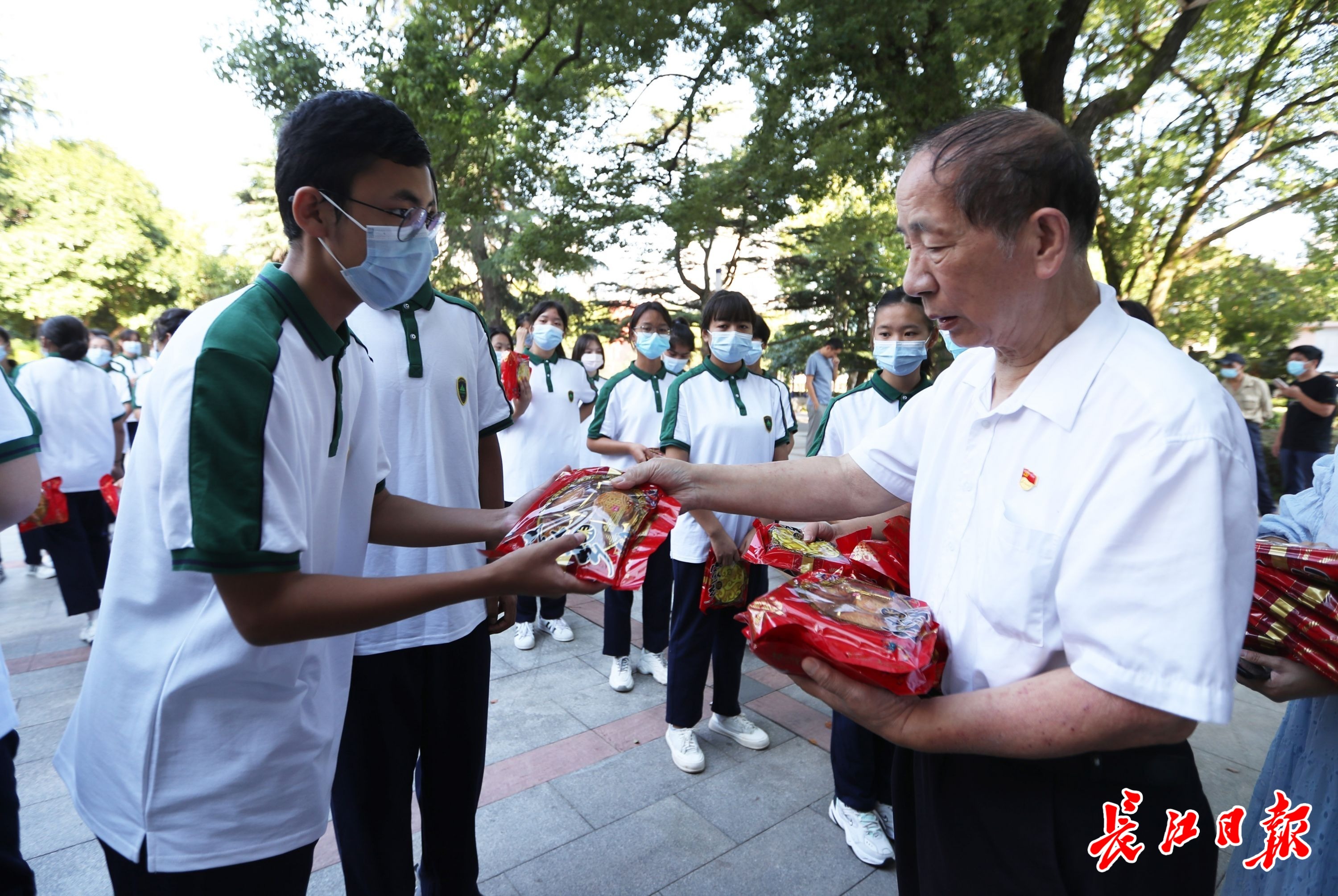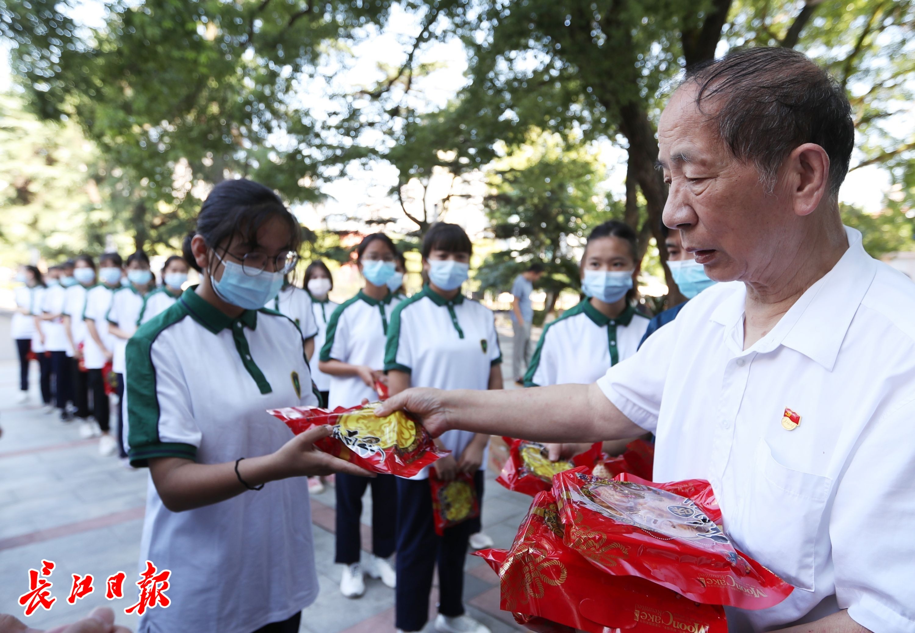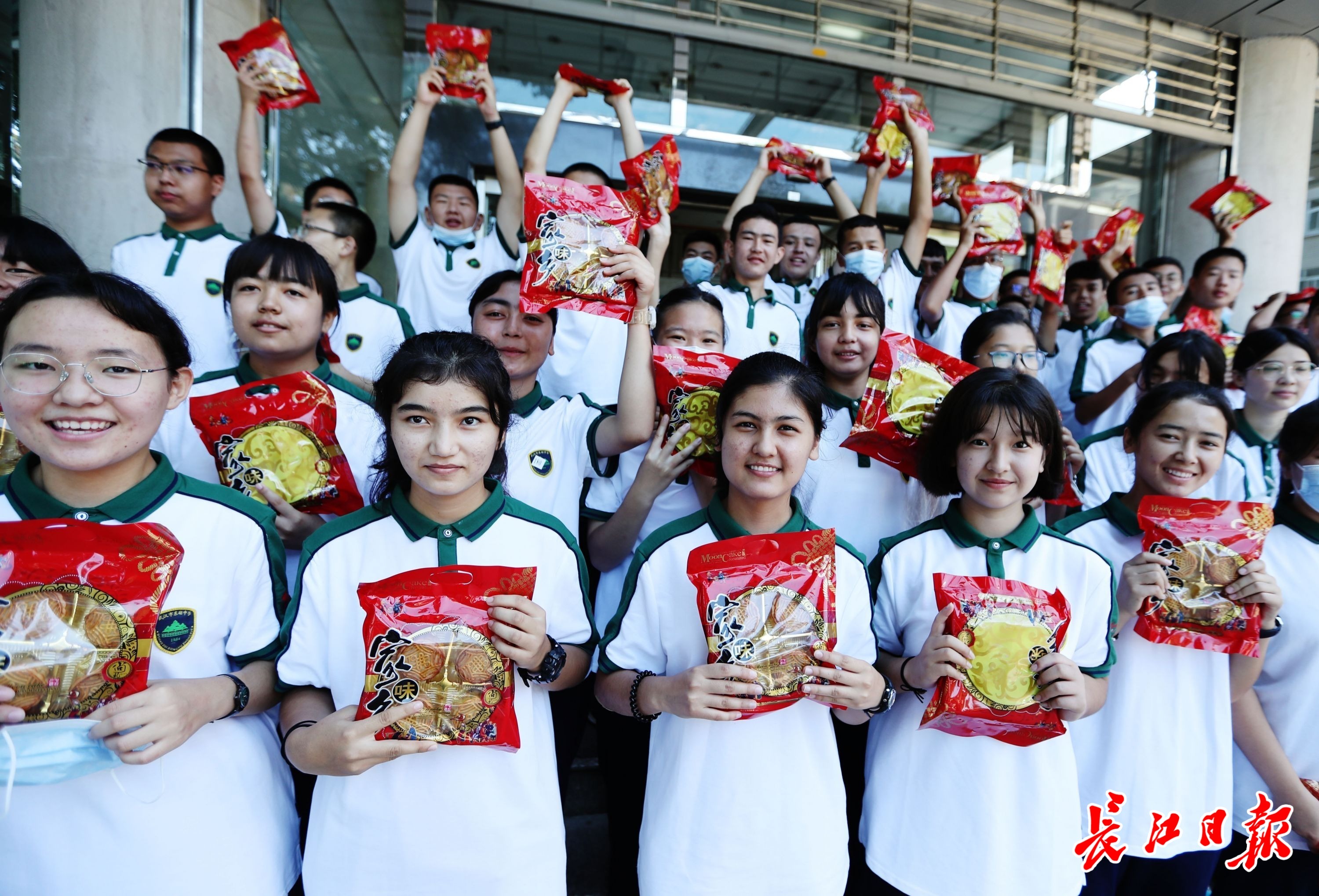 长江日报大武汉客户端9月21日讯 9月21日中秋节,全国道德模范吴天祥先后来到东湖中学新疆班、武汉西藏中学看望在汉就读的少数民族学生,他自费购买了2000份月饼送给学生,并祝愿他们长大后为民族团结做出贡献。这也是他自武汉西藏中学建校起,连续16年给该校学生送月饼。