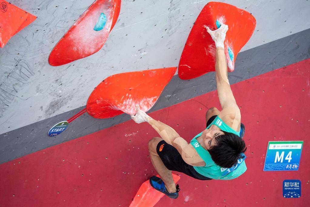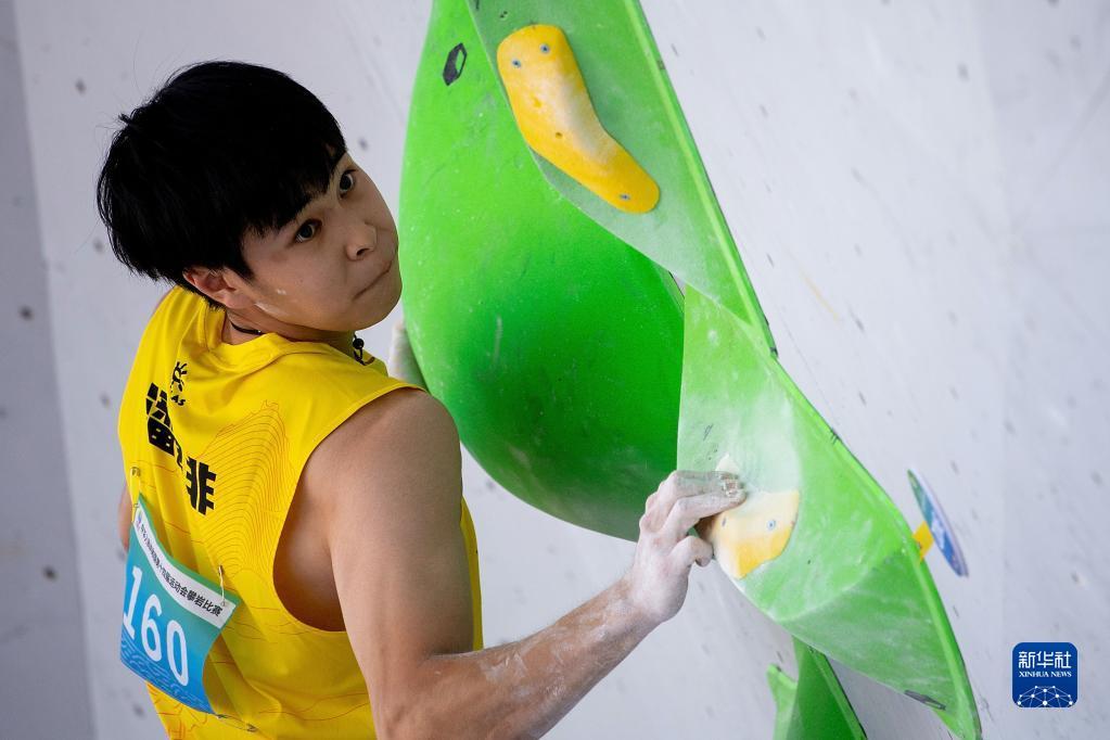 9月21日,湖北队选手黄迪翀在攀石赛中。