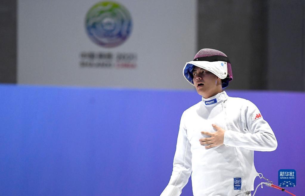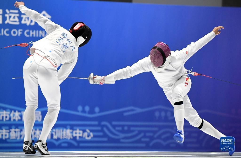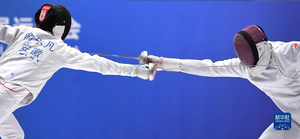 当日,在天津市蓟州体育训练中心举行的第十四届全运会击剑项目男子重剑个人决赛中,安徽队选手兰明豪以15比11战胜队友俞乐凡,夺得冠军。
