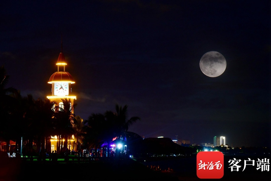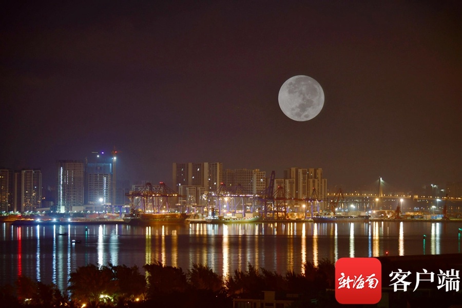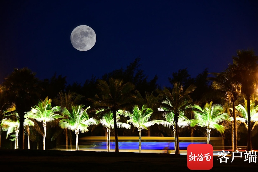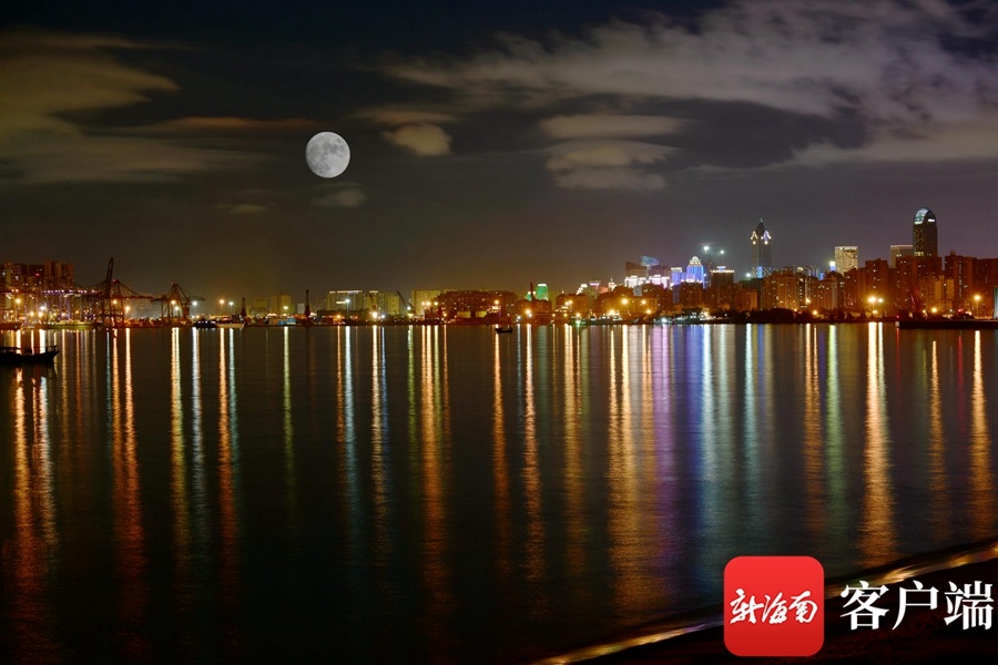海口湾月色。(二次曝光)记者 陈卫东摄