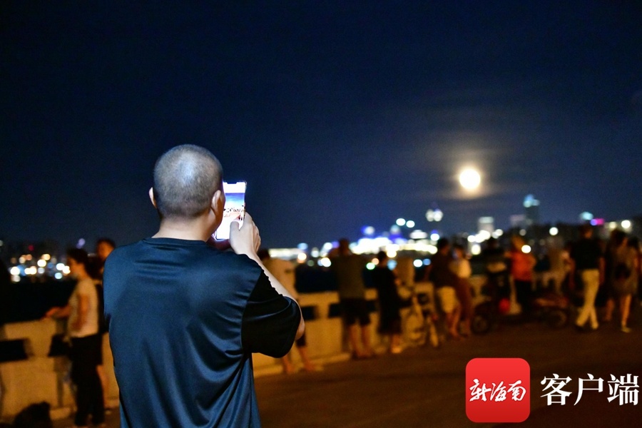 市民拍月亮。记者 陈卫东摄