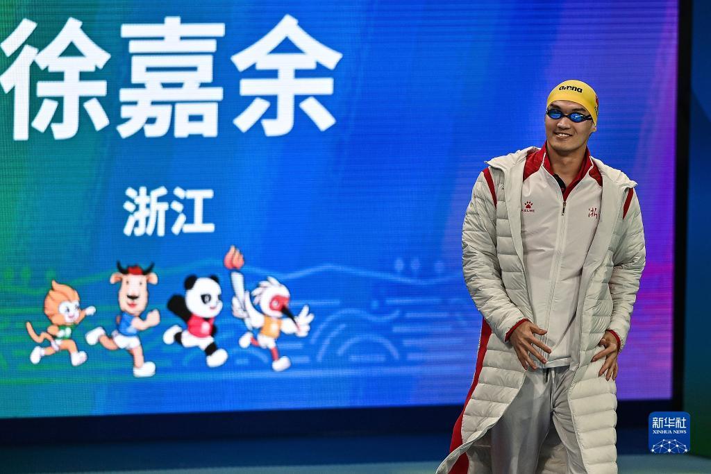 9月21日,浙江队选手徐嘉余在比赛前出场,他以53秒26的成绩获得冠军。