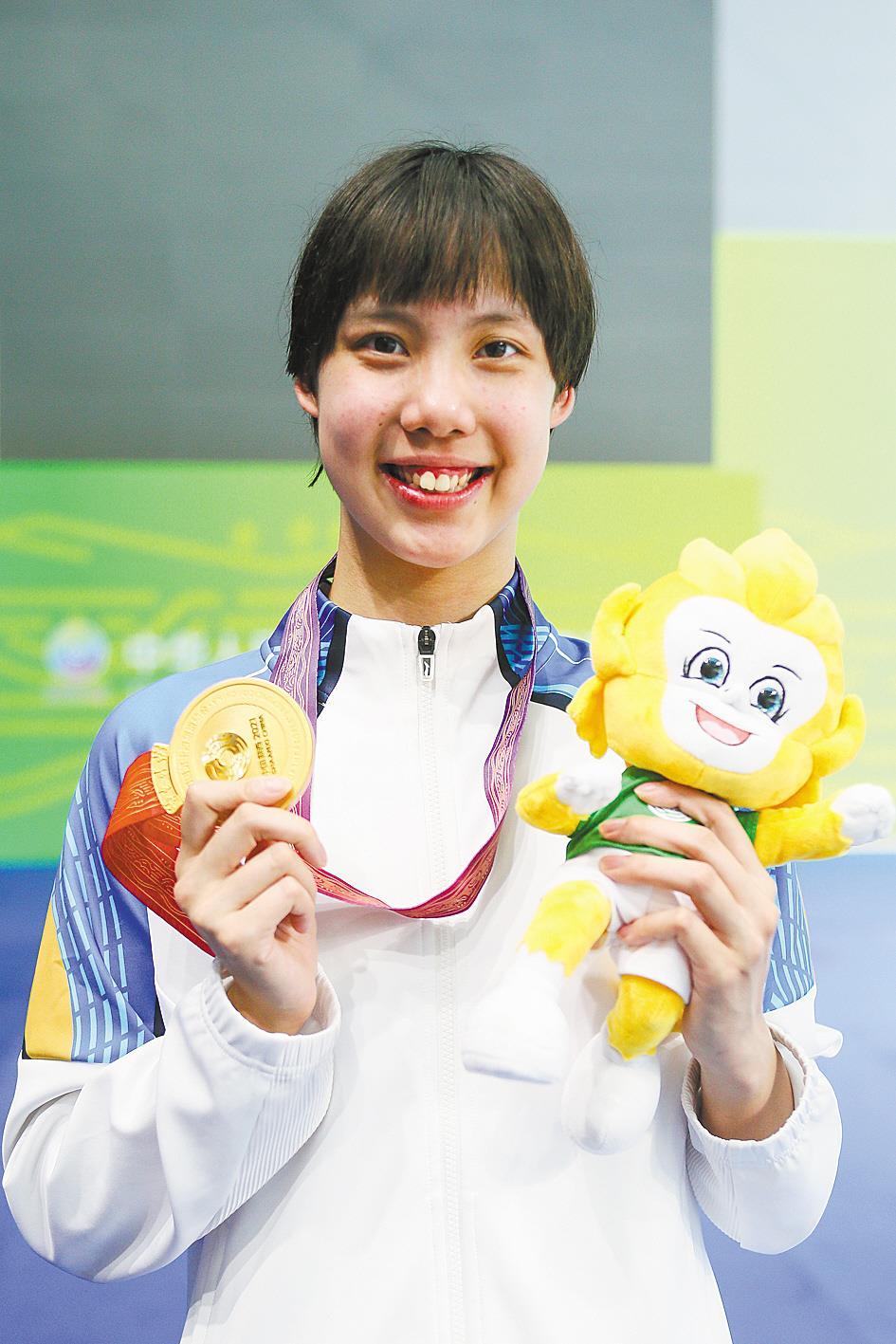 彭旭玮展示金牌。
