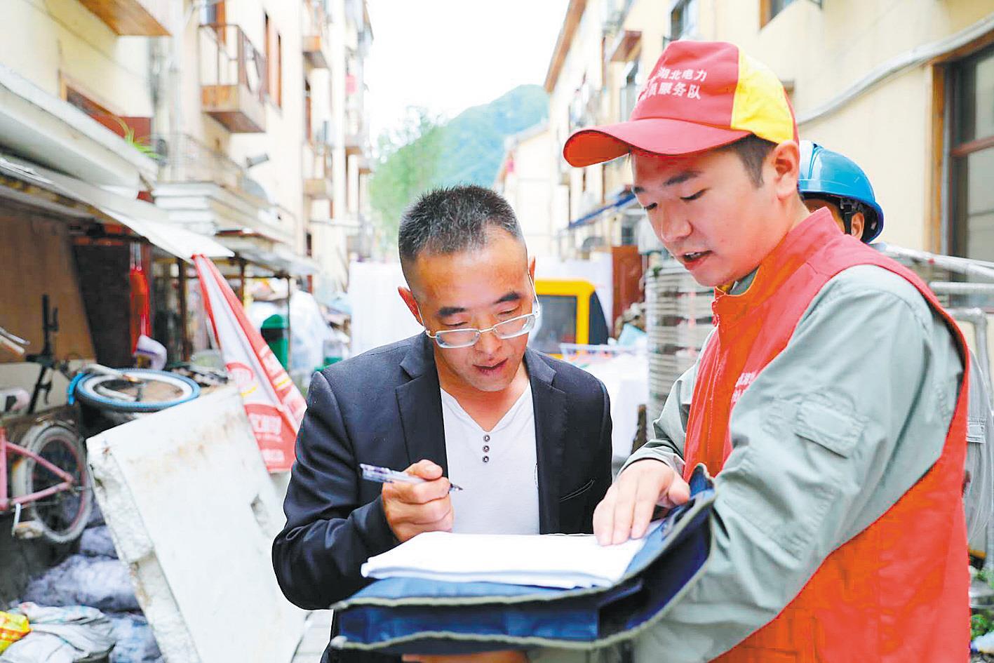 国家电网神农架供电公司工作人员上门为民宿业主宣讲用电政策。(国家电网神农架供电公司供图)