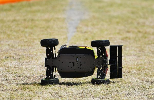 一辆赛车失控翻车。