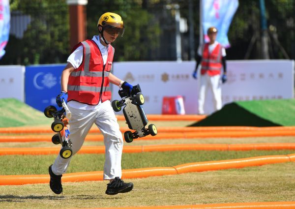 9月21日,武汉市第十一届运动会青少年科技体育车辆模型比赛,在神龙小学教育集团湖畔校区进行。来自各城区代表队的80多名青少年操控着他们的“战车”,在障碍赛道上进行着一场场速度与激情的追逐战。由于速度极快,场地上弯道和爬坡紧凑,平常难得一见“狂飙模式”和传说中的“大型翻车现场”轮番上演。