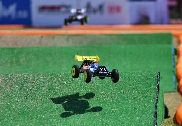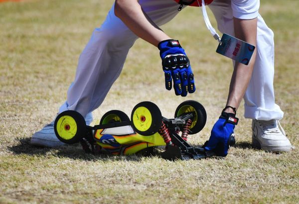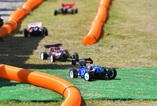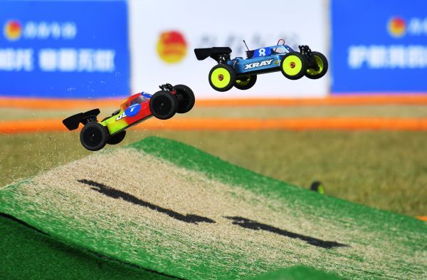 选手们站在高处遥控赛车。