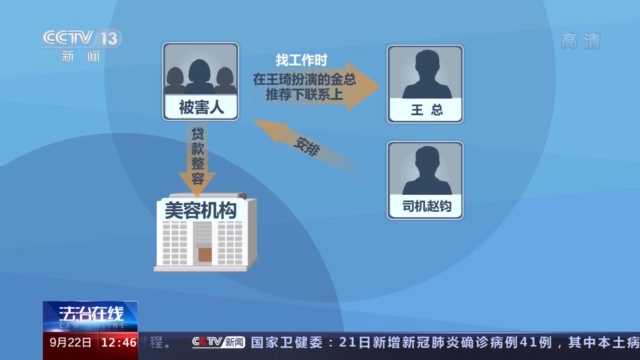 在几名被害人的描述中,自己都是在找工作时在王琦扮演的金总的推荐下,联系上了所谓的王总与司机赵钧,之后,在司机赵钧的安排下来到了同一家美容机构,贷款整容。