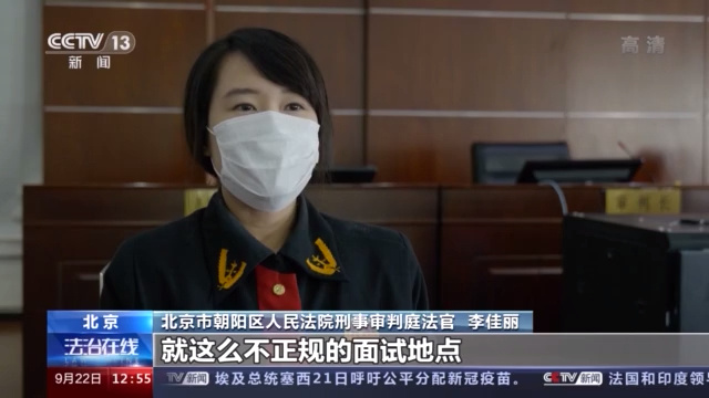 北京市朝阳区人民法院刑事审判庭法官 李佳丽:在进行面试求职的过程中,对于像面试地点不正规,比如说像本案,被告人是没有实际工作场所的,所以他们约被害人见面都是在酒店,或者私家车里面。或者说是工作内容不切实际,甚至是要求被害人去预先支付费用,像这种有异常资金支出要求的,求职者就应该保持高度警惕了。