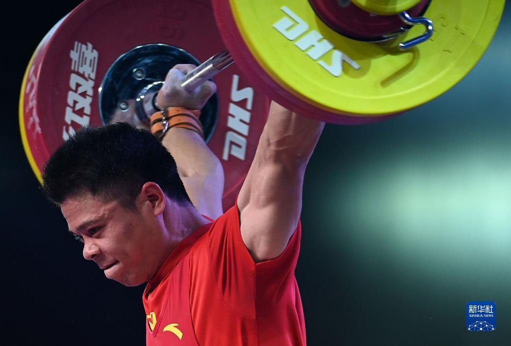 当日,第十四届全运会举重项目男子73公斤级决赛在陕西渭南举行。