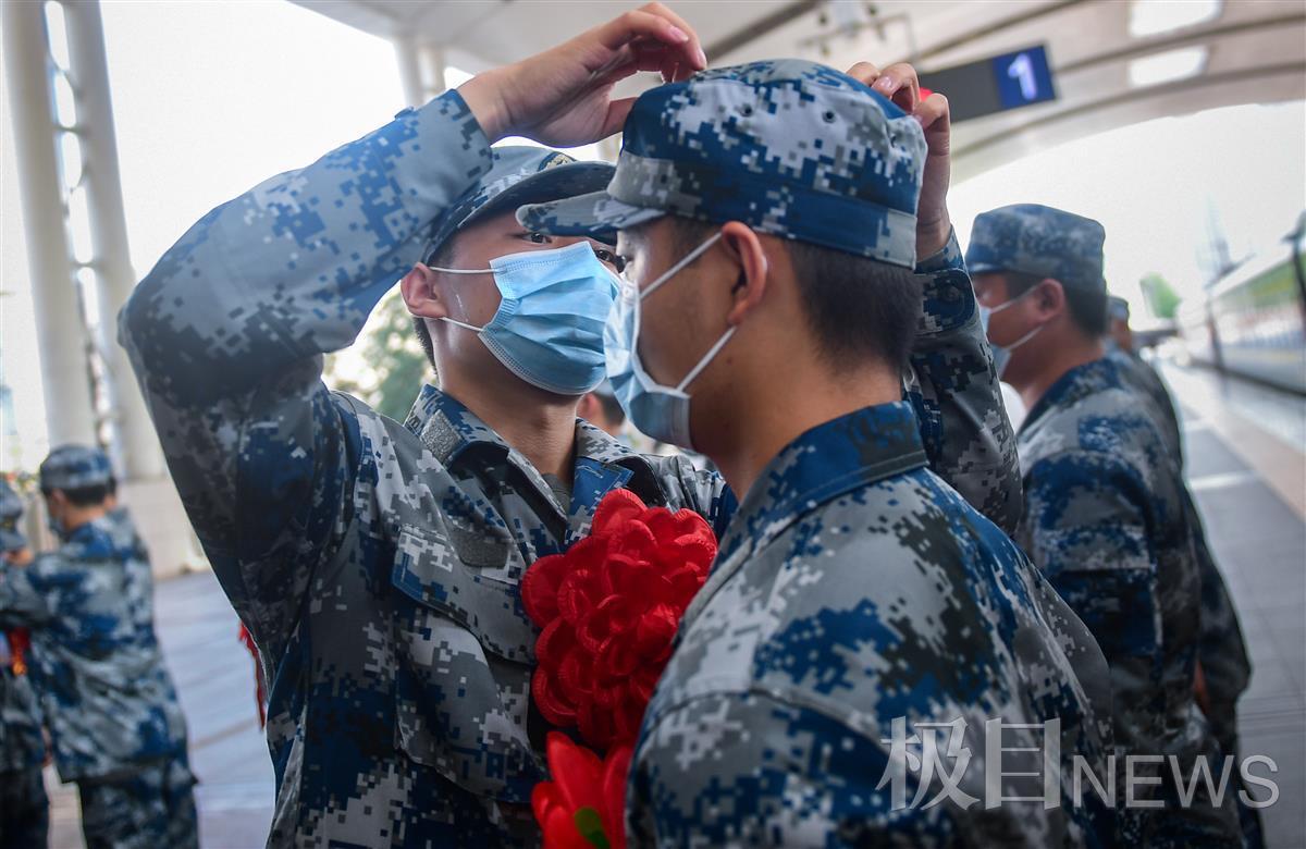 19岁的秦子恒来自武昌首义学院,他说,爷爷奶奶其实从河南老家来武汉已经有一段日子了,但因为部队管理的规定,走之前也没能和他们好好说上几句话。到了部队,他想争取立功,干更长的时间,用实际行动告诉爷爷奶奶,自己在部队得到了锻炼。
