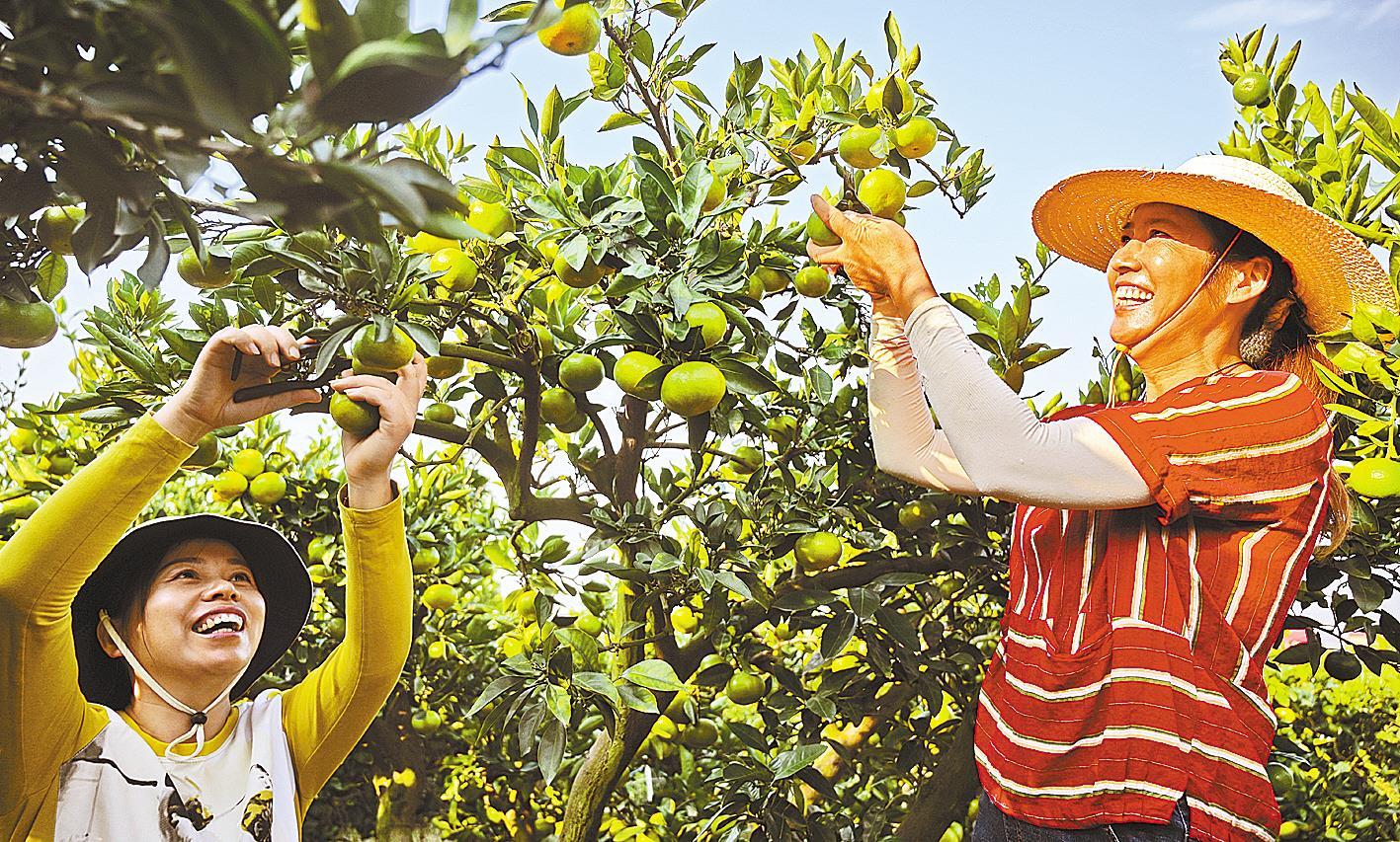 9月23日,2021年中国农民丰收节宜昌主会场活动在当阳市半月镇凤凰山举行,吸引不少游客前来采摘、品尝柑橘。今年,当阳市柑橘种植面积35万亩,预计产量达42万吨。 (湖北日报全媒记者 刘曙松 通讯员 汪运钦 摄)