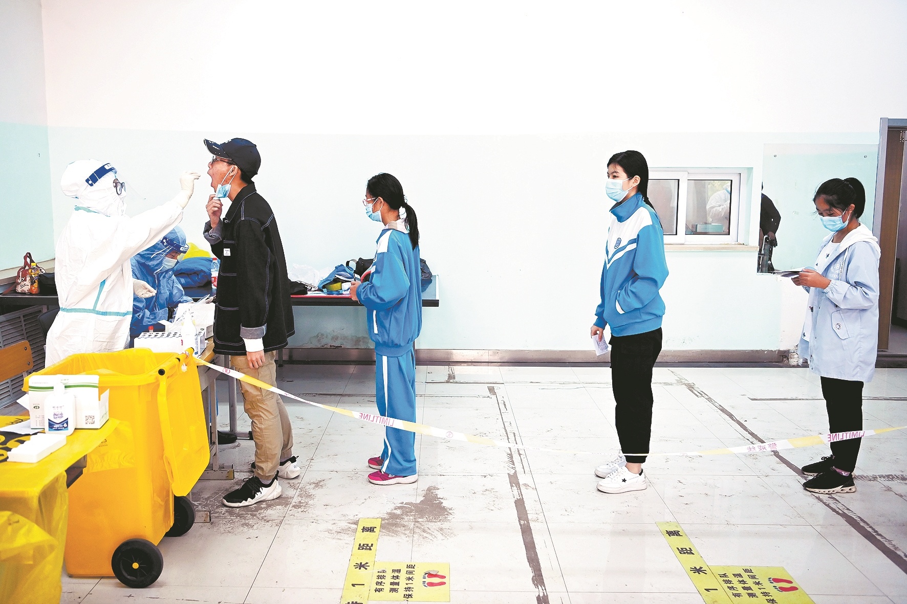 9月23日,在哈尔滨市香坊区一核酸检测点,市民在排队进行核酸检测 新华社发