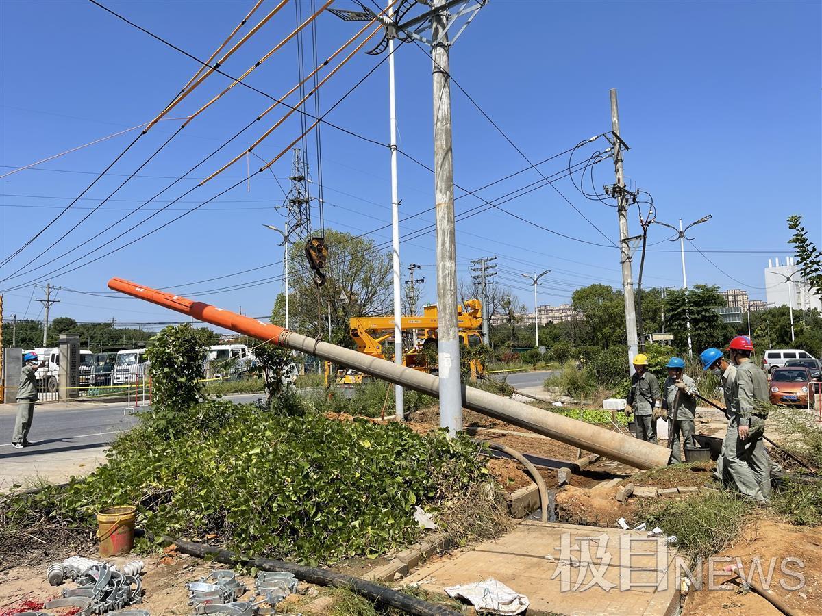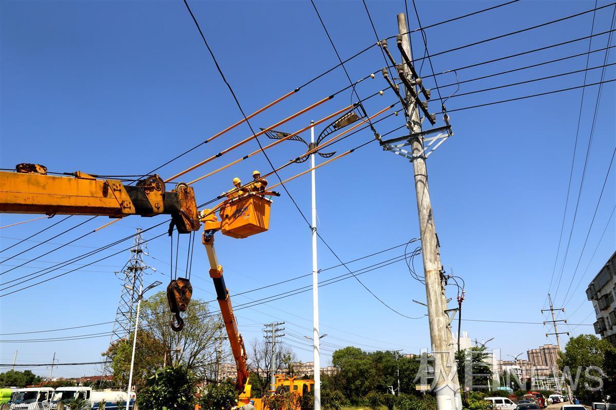 9月22日,在武汉市江夏区金口街,国网武汉供电公司在江夏区域首次开展“带电立杆”作业,为周边3000多户居民以及30余家企业减少了一次计划停电。