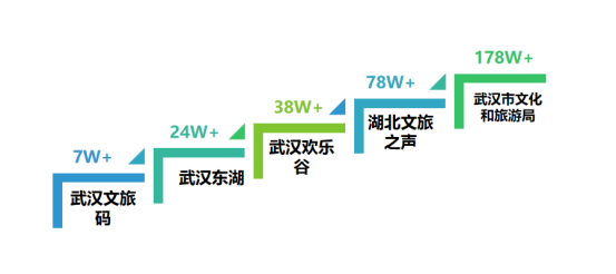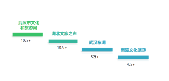 从文章阅读总数来看,本期前两名阅读量表现亮眼,“武汉市文化和旅游局”该项指标为178万+,较7月增加了54万+;“湖北文旅之声”为78万+,较上月增加24万+;“武汉欢乐谷”本期阅读量38万+,与上期基本持平,“武汉东湖”本期阅读量24万+(上期11万+)。总的来说,本期前四名都超过10万,第五名“武汉文旅码”不到8万,和上期基本一致。