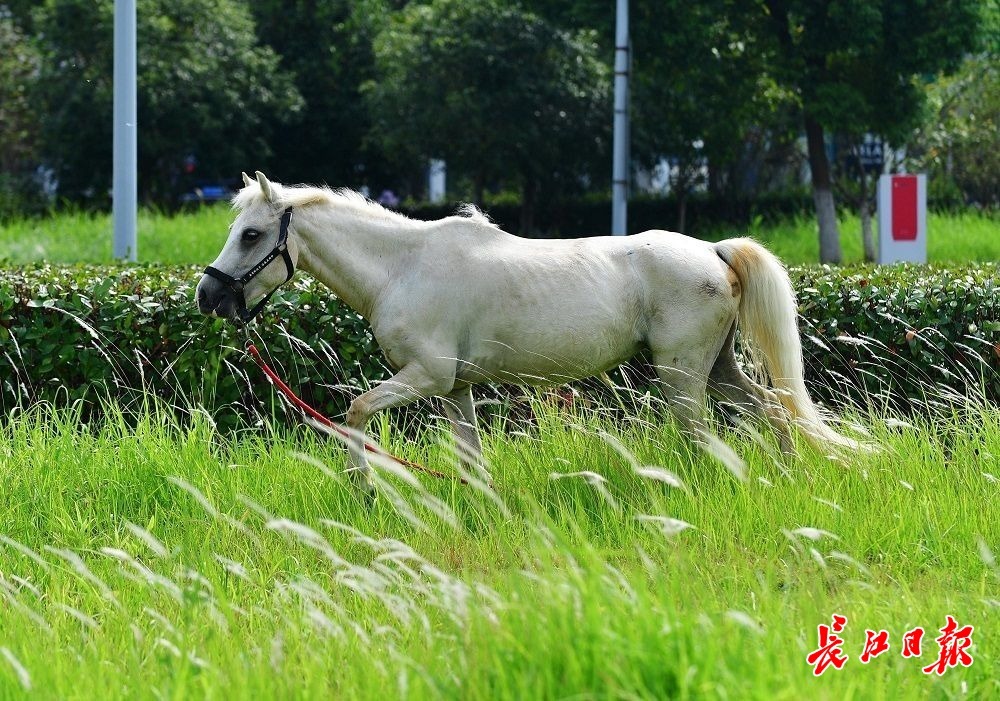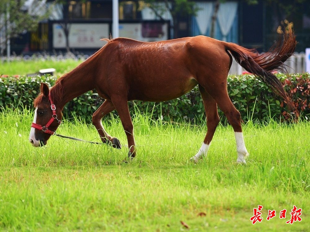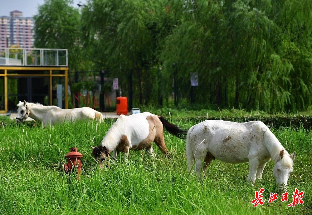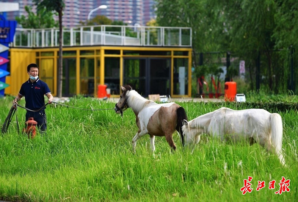 长江日报大武汉客户端9月24日讯 硚口区三环线附近一家商场的停车场里,一片篮球场大小的空地上长满了及膝高的野草。9月24日,6匹矮马在这里埋头吃草,不时打着欢快的响鼻,偶尔在草丛里打个滚,似乎非常享受在户外“草原”啃食鲜草的美好感觉。据了解,这些马来自商场里一家马术俱乐部,趁着天气好,管理员将马带出来“放牧”,让马放松一下。(长江日报记者李永刚 摄影报道)