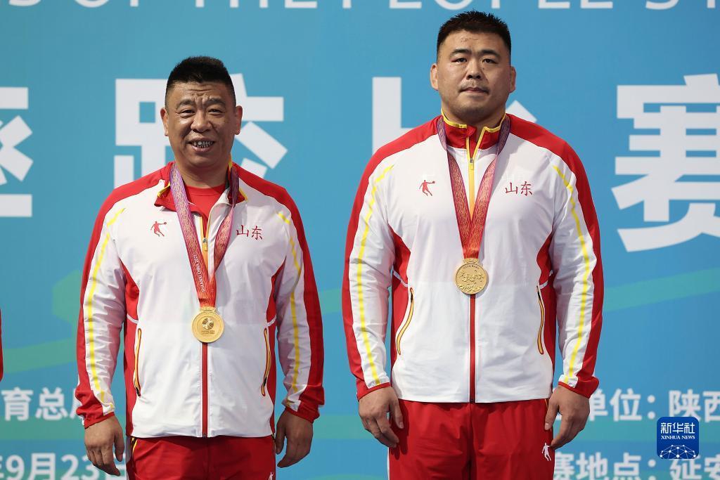 9月24日,山东队选手邓志伟(左)和内蒙古队选手佈和额尔敦在比赛中。