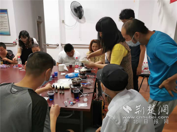荆楚网(湖北日报网)讯(记者李燕 通讯员杨晴晴)为丰富辖区残疾人的精神文明生活,增强残疾人动手能力,9月23日,武昌区积玉桥街道携手荆楚社工在阳光家园开展"巧手自制,乐趣无限"香薰蜡烛DIY手工活动。