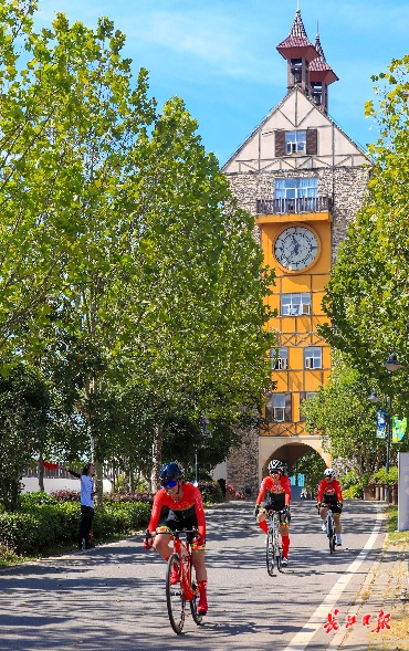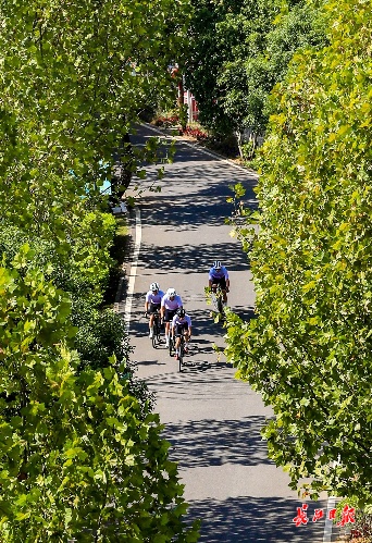 戴珞表示,他常沿蔡甸九真山绿道、嵩阳大道训练。蔡甸拥有良好的骑行路况,沿途风景优美、路面干净平整,而且当地群众对自行车运动较为热爱,在此训练时常能遇见成群的骑行爱好者。