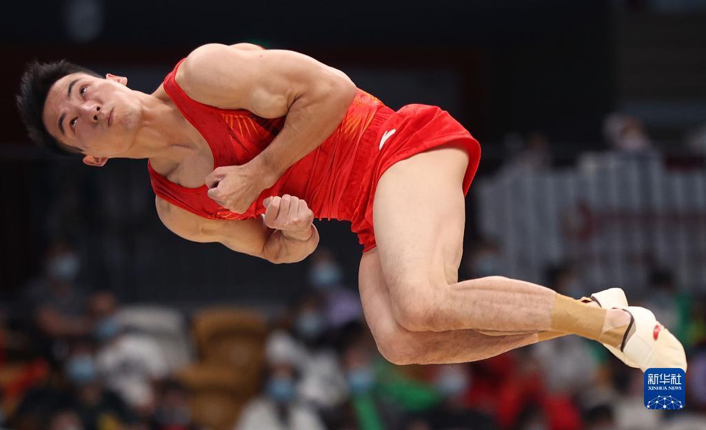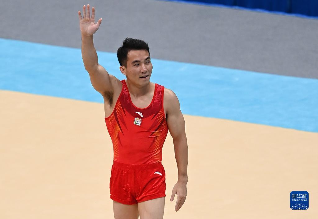 9月25日,贵州队选手邓书弟在男子自由体操比赛中。