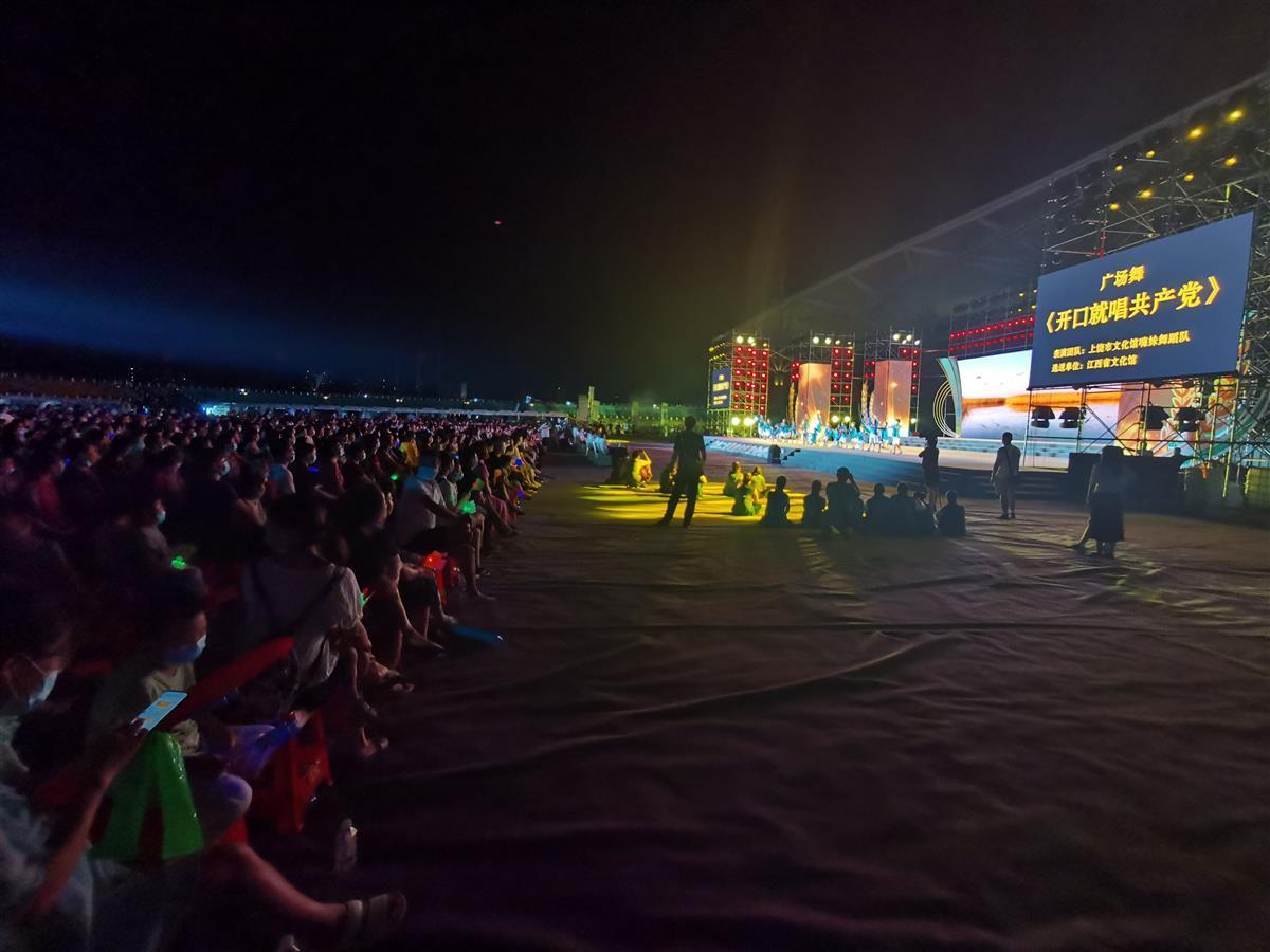 此外,由江西省文化馆选送,南昌县文化馆群星艺术团带来的《我的祖国》,用激昂的舞步,共祝伟大的祖国繁荣昌盛;由江西省文化馆选送,江西上饶市文化馆嗨妹舞蹈队演绎的《开口就唱共产党》,引入地方特色上饶民歌和鄱湖渔鼓元素,载歌载舞地展示了在共产党的领导下,新时代生态文明建设稳步向前,乡村旧貌换新颜的美好图景……