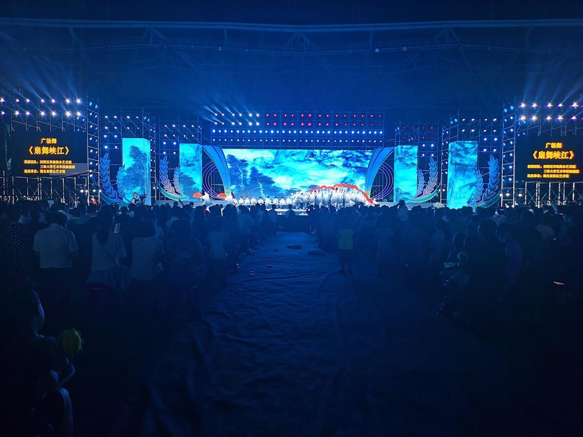 由湖北省群众艺术馆选送,湖北宜昌市西陵区学院街办艺术团、三峡大学艺术学院舞蹈团带来的广场舞《扇舞峡江》,将太极扇元素融入其中,巧妙地将传统文化、运动健身与广场舞融合,在一招一式,一张一弛之间,传递出天地和合之美。三峡大学艺术学院大二学生吴梦熙直言:“原本以为广场舞就是随便跳跳,但没想到广场舞可以这么美,身边的朋友也许会说‘啊,你老了可千万别去跳广场舞呀’,但我想我一定会去跳的。”
