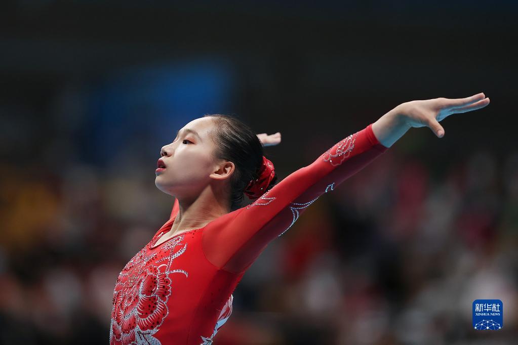 9月26日,湖南队选手周雅琴在比赛前,她以14.660分获得冠军。