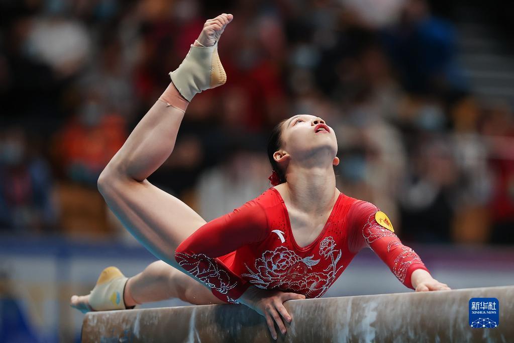 当日,第十四届全运会体操项目平衡木决赛在西安举行。