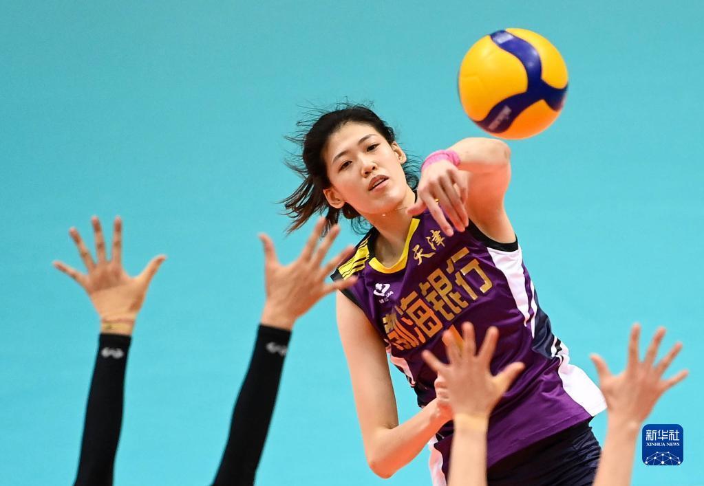 9月26日,天津队球员李盈莹在比赛中进攻。