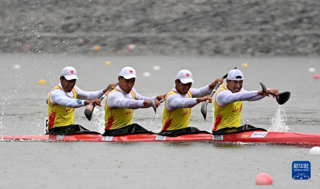 当日,第十四届全运会皮划艇静水男子500米四人皮艇决赛在陕西杨凌举行。
