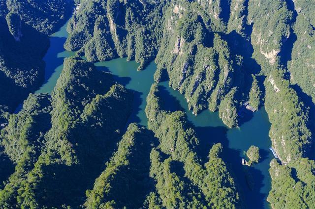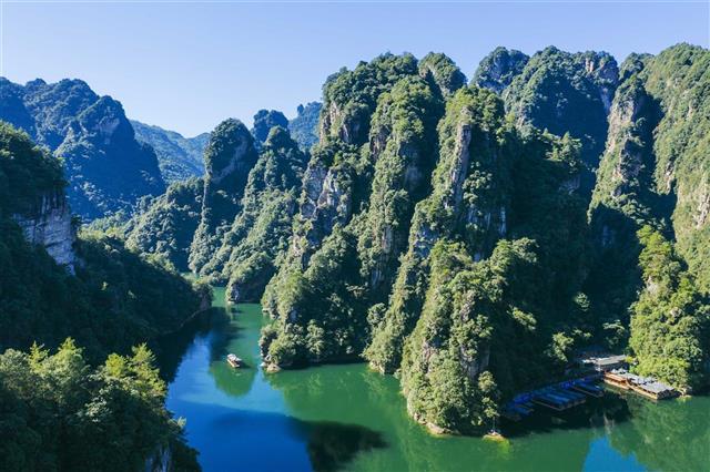 俯瞰张家界武陵源宝峰湖。(湖北日报全媒记者 梅涛 摄)