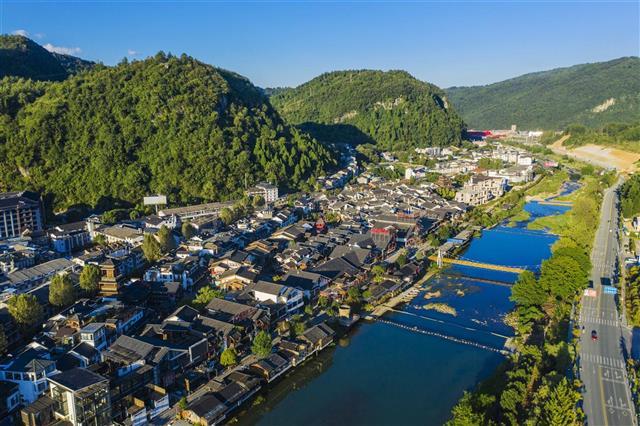 俯瞰张家界武陵源溪布街片区。(湖北日报全媒记者 梅涛 摄)