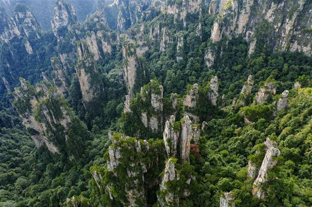 俯瞰张家界武陵源天子山御笔峰峰林。(湖北日报全媒记者 梅涛 摄)