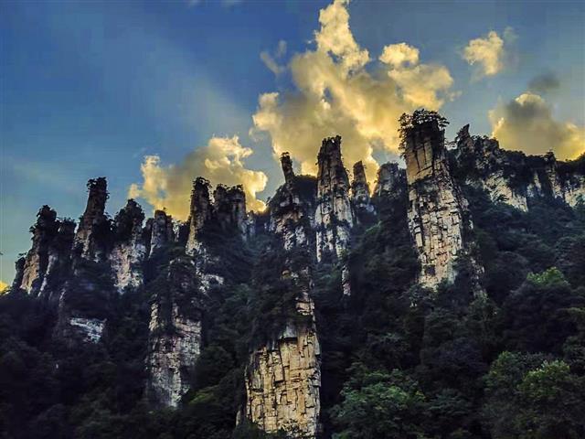 夕阳下的张家界武陵源天子山峰林奇观。(湖北日报全媒记者 梅涛 摄)