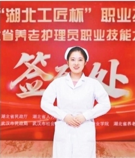 来自武汉市江汉区社会福利院的95后选手唐新兴以总分第一的成绩荣获大赛个人一等奖。唐新兴今年25岁,读大学时,她学习的是助产专业。毕业后,她选择成为养老护理员,理由是“喜欢和老人待在一起,这份职业很有意义”。在福利院里,唐新兴负责9位老人的生活照护工作,“简单来说,老人的吃喝拉撒睡工作都归我负责”。工作三年以来,她在前辈们手把手带教下,不断提升护理操作规范性、专业性。这次外出比赛,她从同事口中听说,她平日服务的老人都十分想念她。“他们说希望我快点回去,让我很感动。”