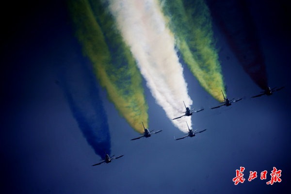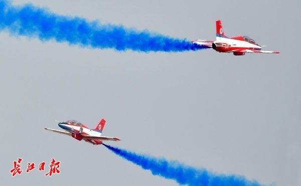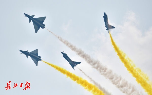 长江日报大武汉客户端9月28日讯 28日,第13届中国航展在珠海开幕,中国空军八一飞行表演队、中国空军航空大学红鹰飞行表演队、歼20、教10、AG600、翼龙2无人机双蝎A亮相开幕式飞行表演。